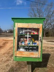 Our Blessing Box is a simple way our church shares Christ’s love with our community. It is stocked with food and basic necessities that anyone in need is welcome to take at any time—no questions asked. Members of our church and community also help keep the box filled so it can continue to be a source of encouragement and support. It’s a small reminder that even simple acts of kindness can make a big difference.